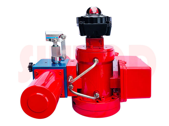 螺旋擺動缸電液執行器是采用螺旋擺動缸,為上海海角官网首页登录入口FDS3係列智能型電液執行器,能實現自動回轉功能,自帶超負荷安全保護,可在現場/遠程進行閥門開、關操作,可選擇調節型以及開關型控製模式,現場帶閥門開度顯示以及全開全關位置指示,故障報警指示等功能。